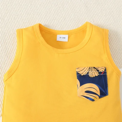 3-24 Months Infant Baby Boy Clothes Set Summer Sleeveless Pocket T-shirt Shorts 2PCS Toddler Boy Casual Outfit Suit Beach Set