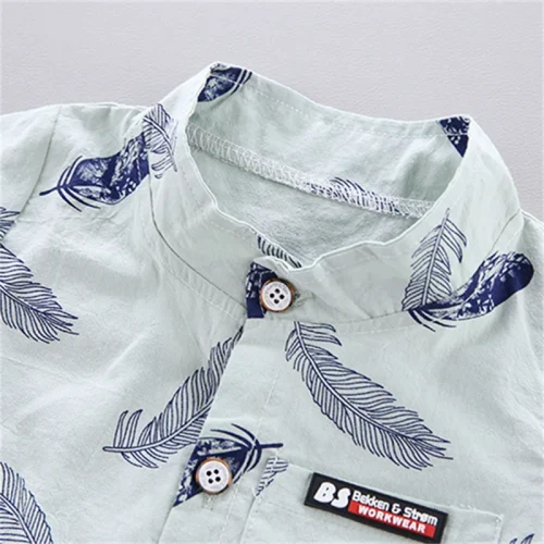 0-3 Year Old Baby Summer Feather Print Shirt Short Sleeve Suit